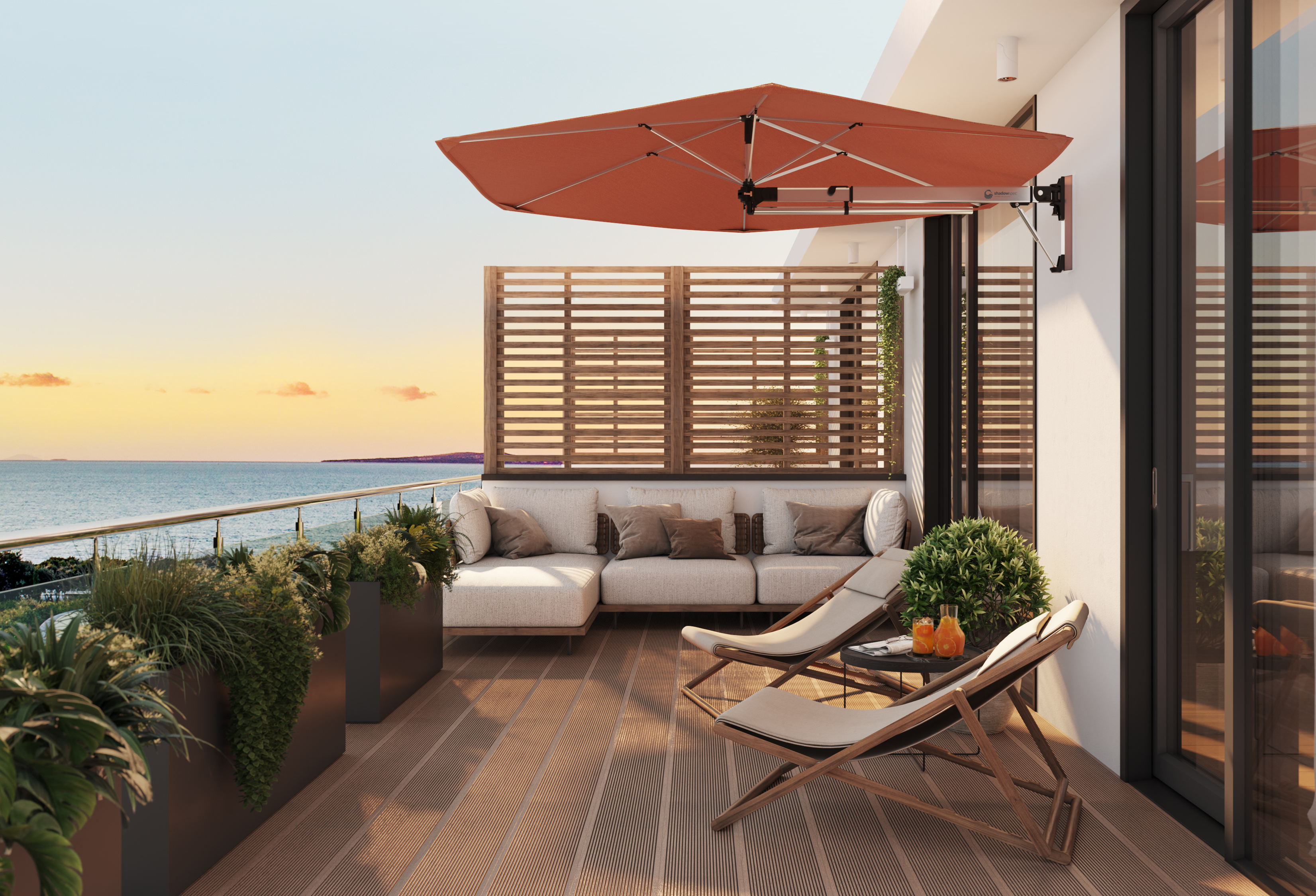 The Retreat™ umbrella solves this problem by providing a wall mounted shade solution that takes seconds to put up or down. Choose from a range of stylish colours to suit your home or workplace.