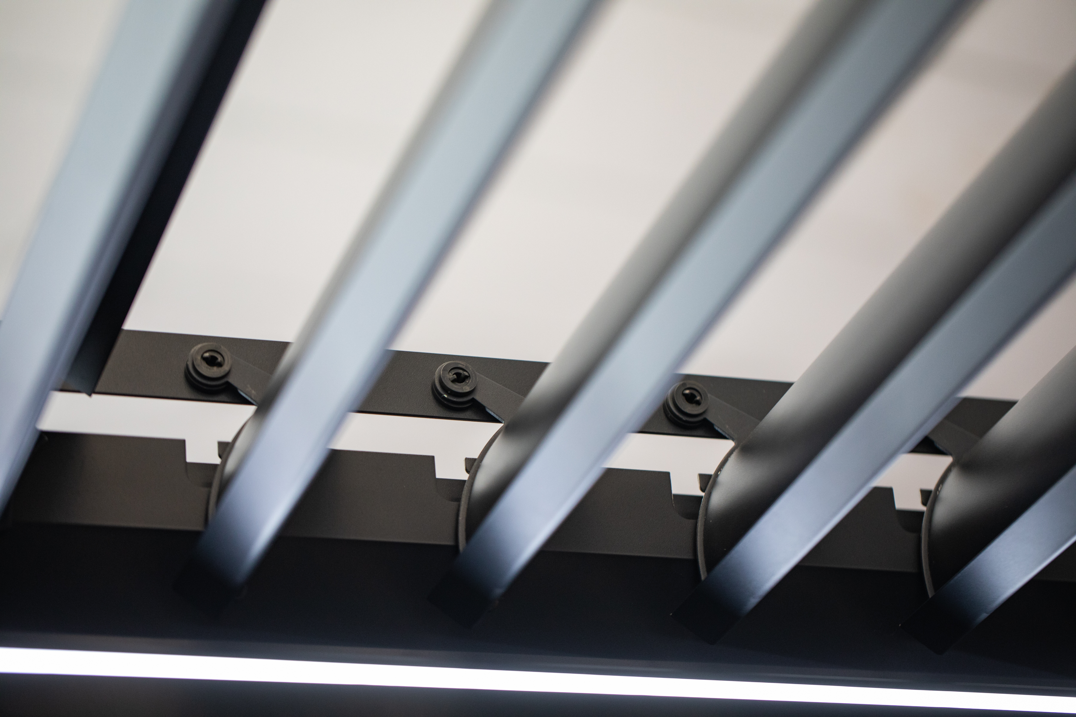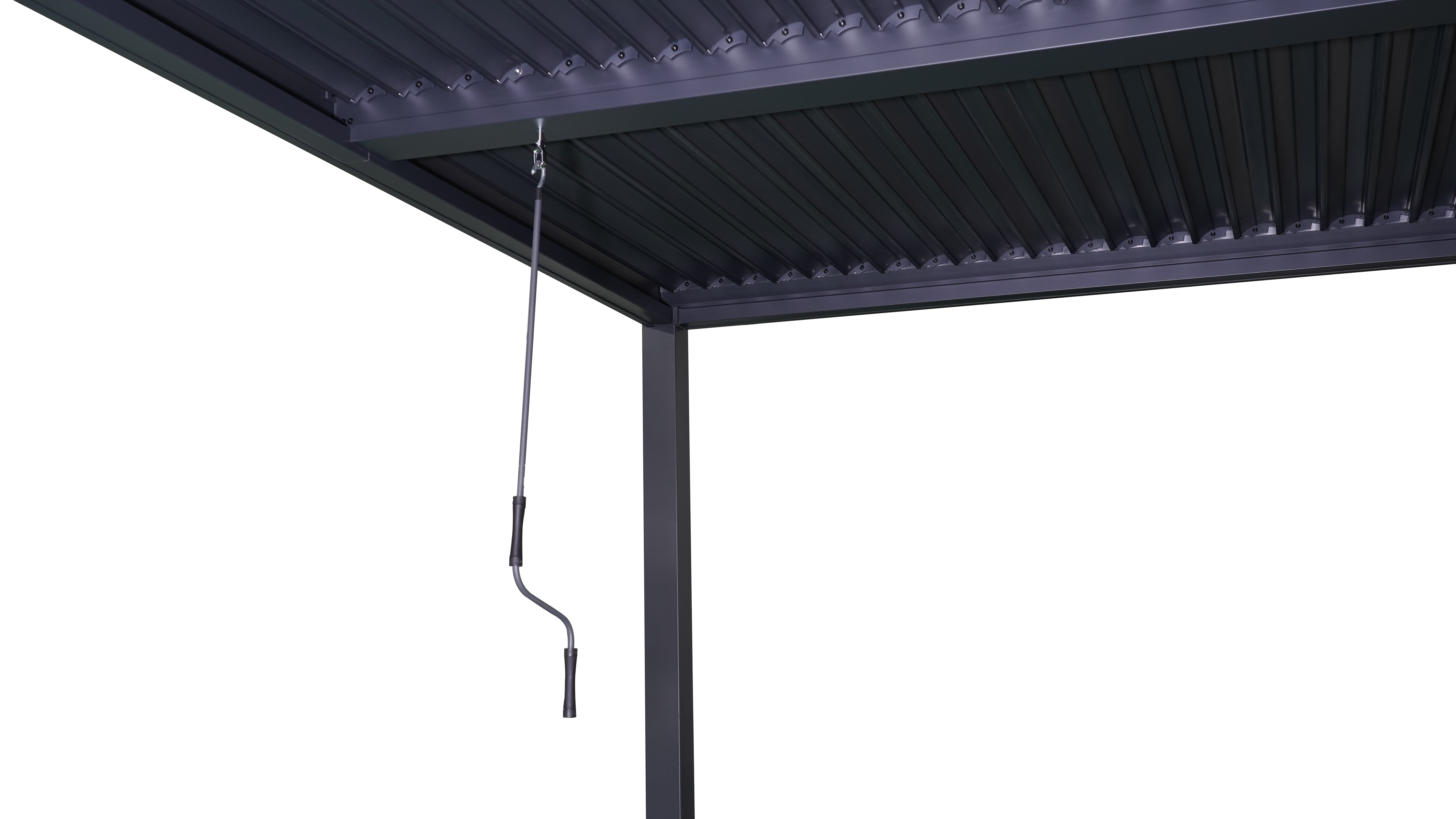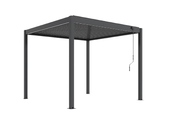 The versatile louvred roof is easy to operate. Just turn the included crank handle to manually open and close the roof slats.